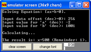 Within the framework of the course “Computer Architecture – Laboratory” (Department of Informatics and Communications, T.E.I. of Central Macedonia) we were asked to choose one of the available projects in order to implement it. My choice was project 1, whose aim was to implement a program that can solve single variable equations of first degree of the form ax + b = 0.